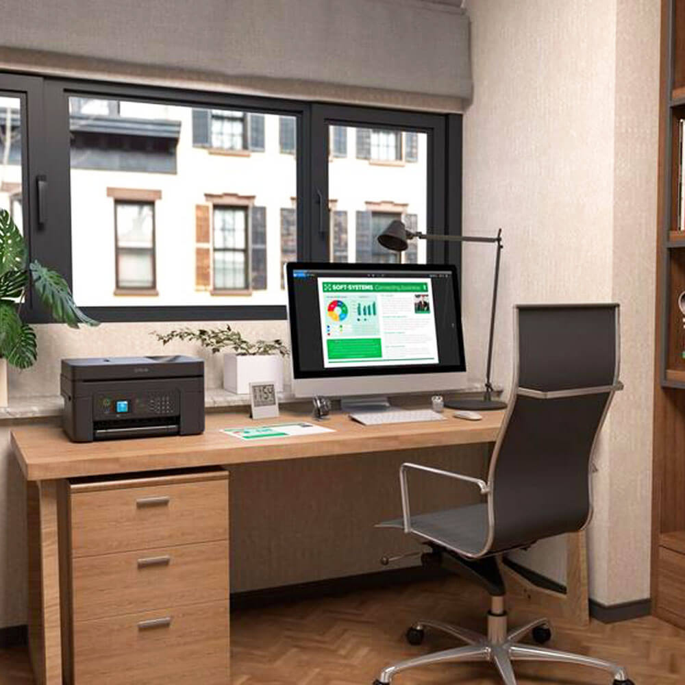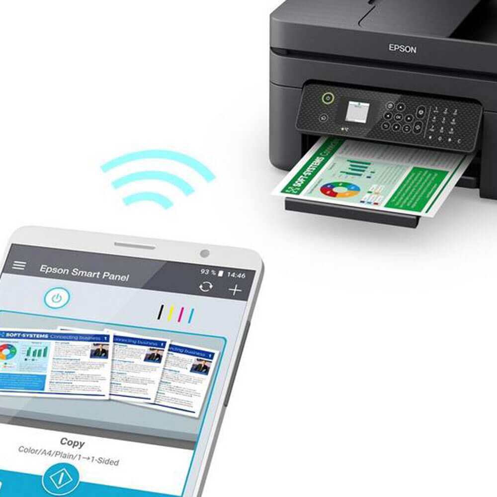 Stampa da qualsiasi punto dell’ufficio grazie alla connettività Wi-Fi oppure utilizza la funzione Wi-Fi Direct per stampare da dispositivi wireless compatibili senza che sia necessaria una rete Wi-Fi. Inoltre, con l’app Epson Smart Panel puoi controllare la stampante dal tuo dispositivo, stampare documenti, monitorare e risolvere i problemi.
