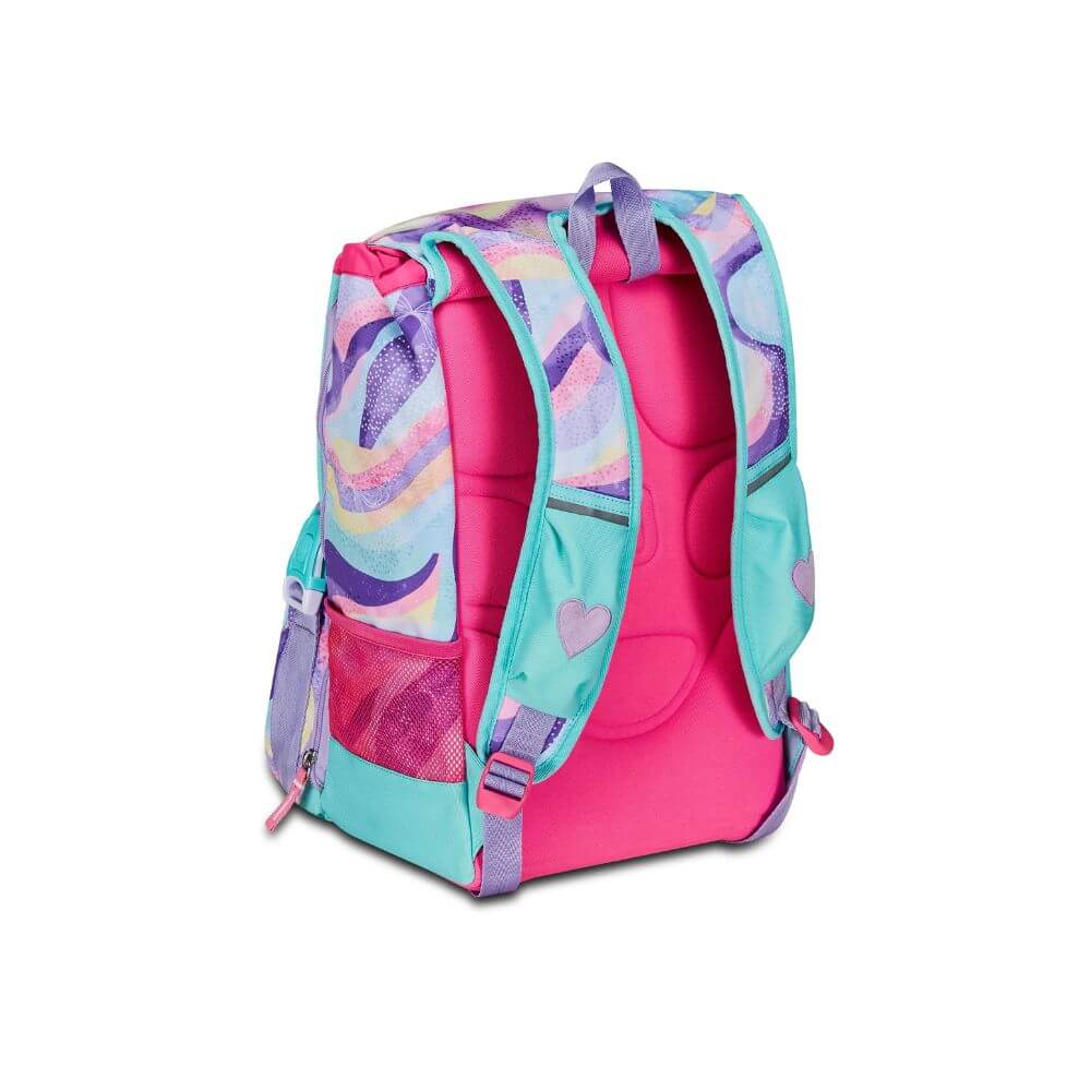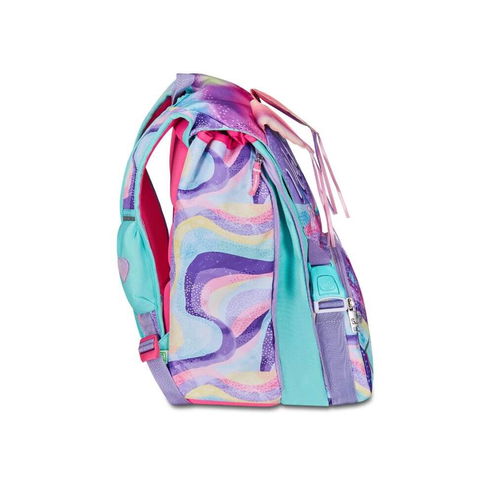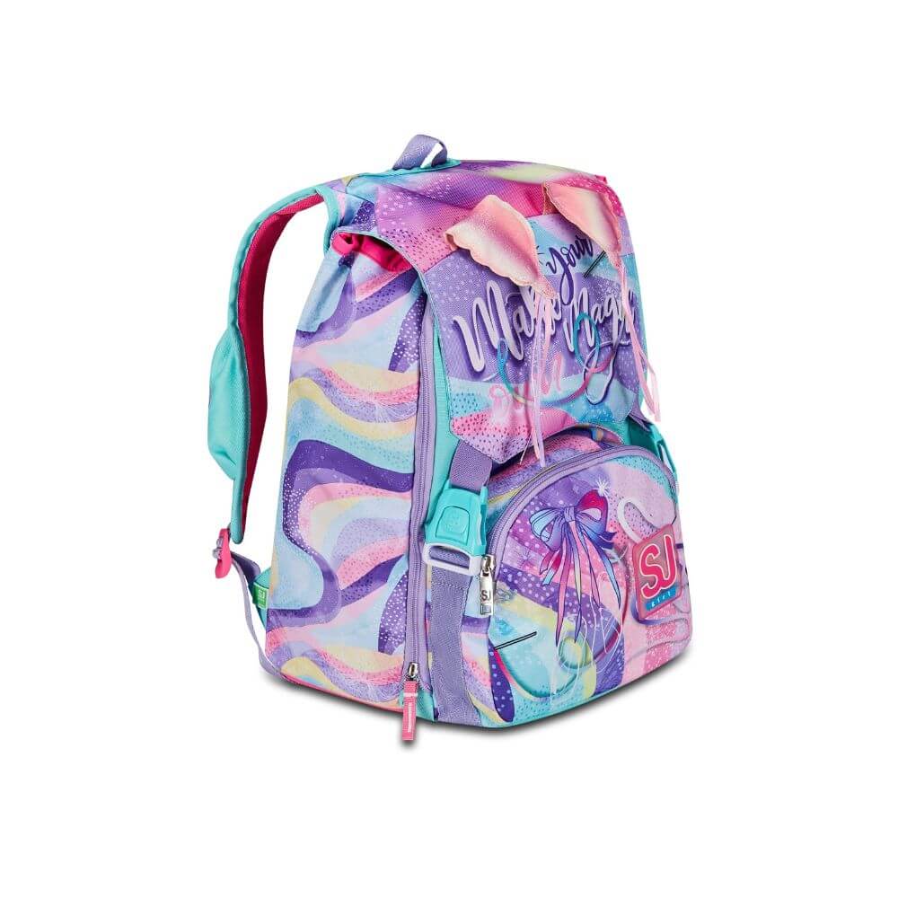 Ciao! Sono RHYTMICSOUL, lo zaino estensibile SJ GANG con cui vai a scuola, e con cui puoi giocare facendo sollevare le mie ALI SCINTILLANTI! Ho un doppio scomparto spazioso, di cui puoi aumentare facilmente la capienza tramite le zip laterali per poter accogliere e distribuire in modo ottimale libri, quaderni e tutto ciò che ti serve per la tua giornata, potendo sfruttare anche la tasca frontale.